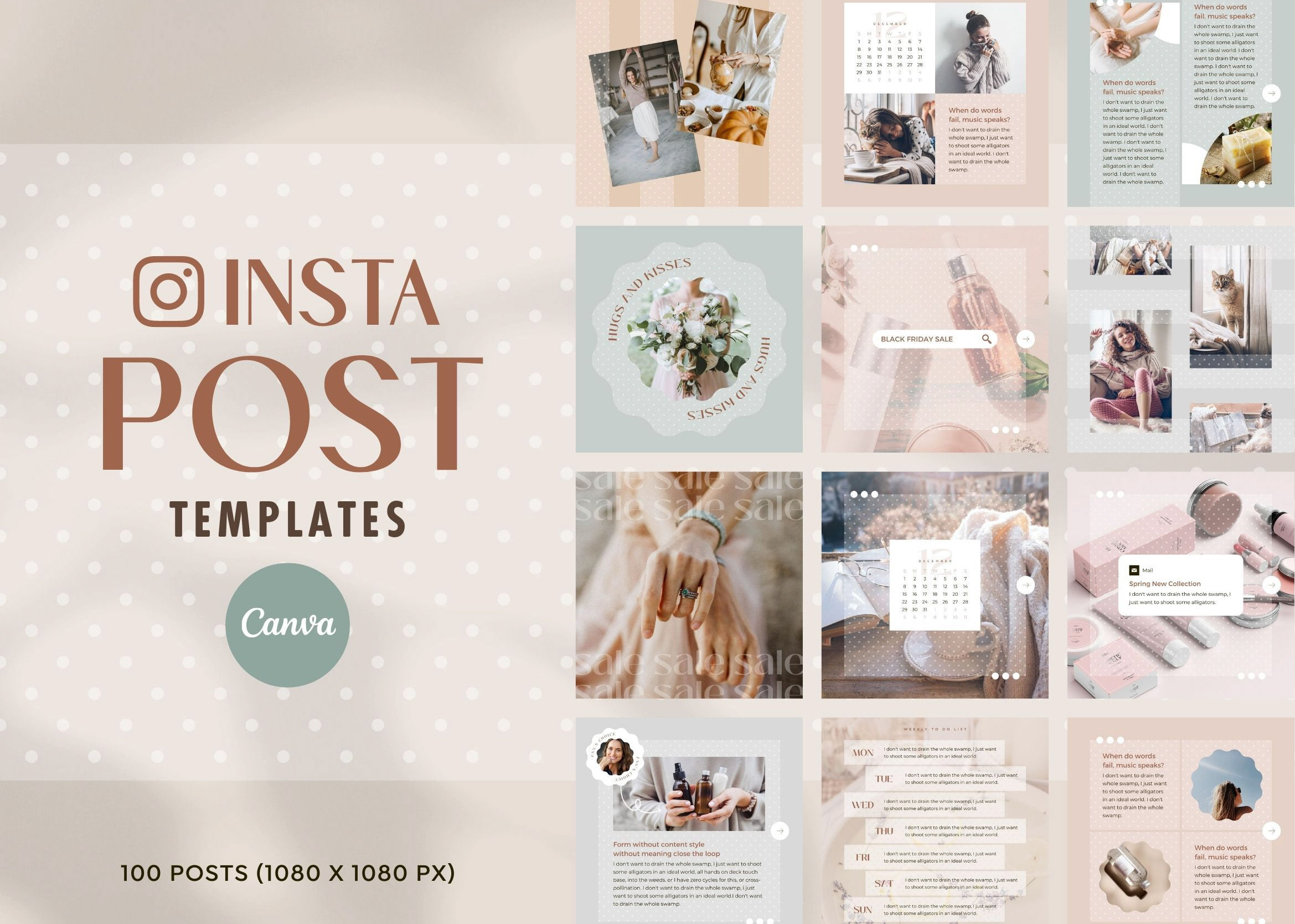 Instagram 96 Calendar Post Templates Canva - Animated